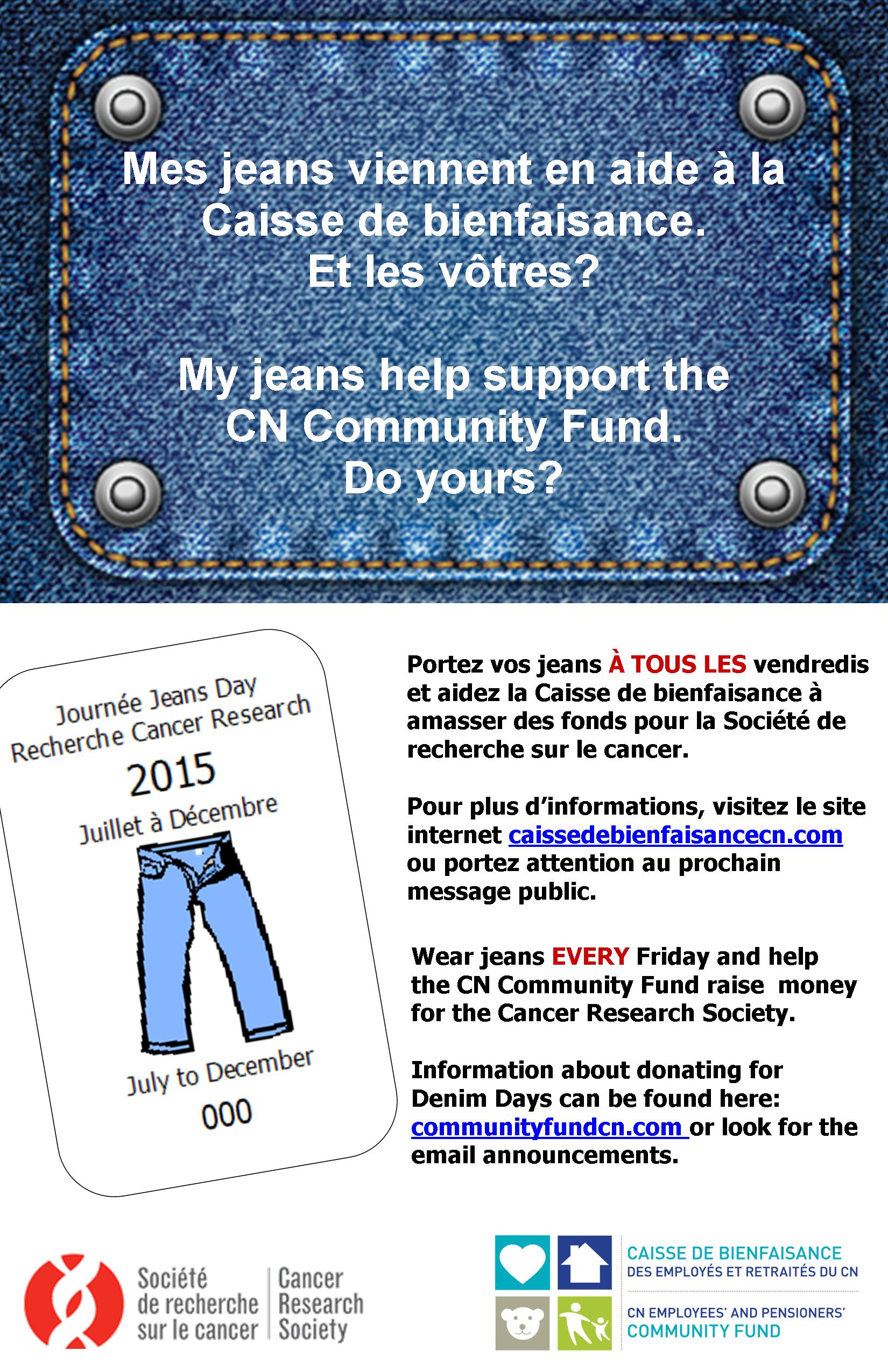 Wear your card proudly on Denim Days to show that your jeans support the CN Community Fund! Respect our customers and colleagues by ensuring your attire is office appropriate.