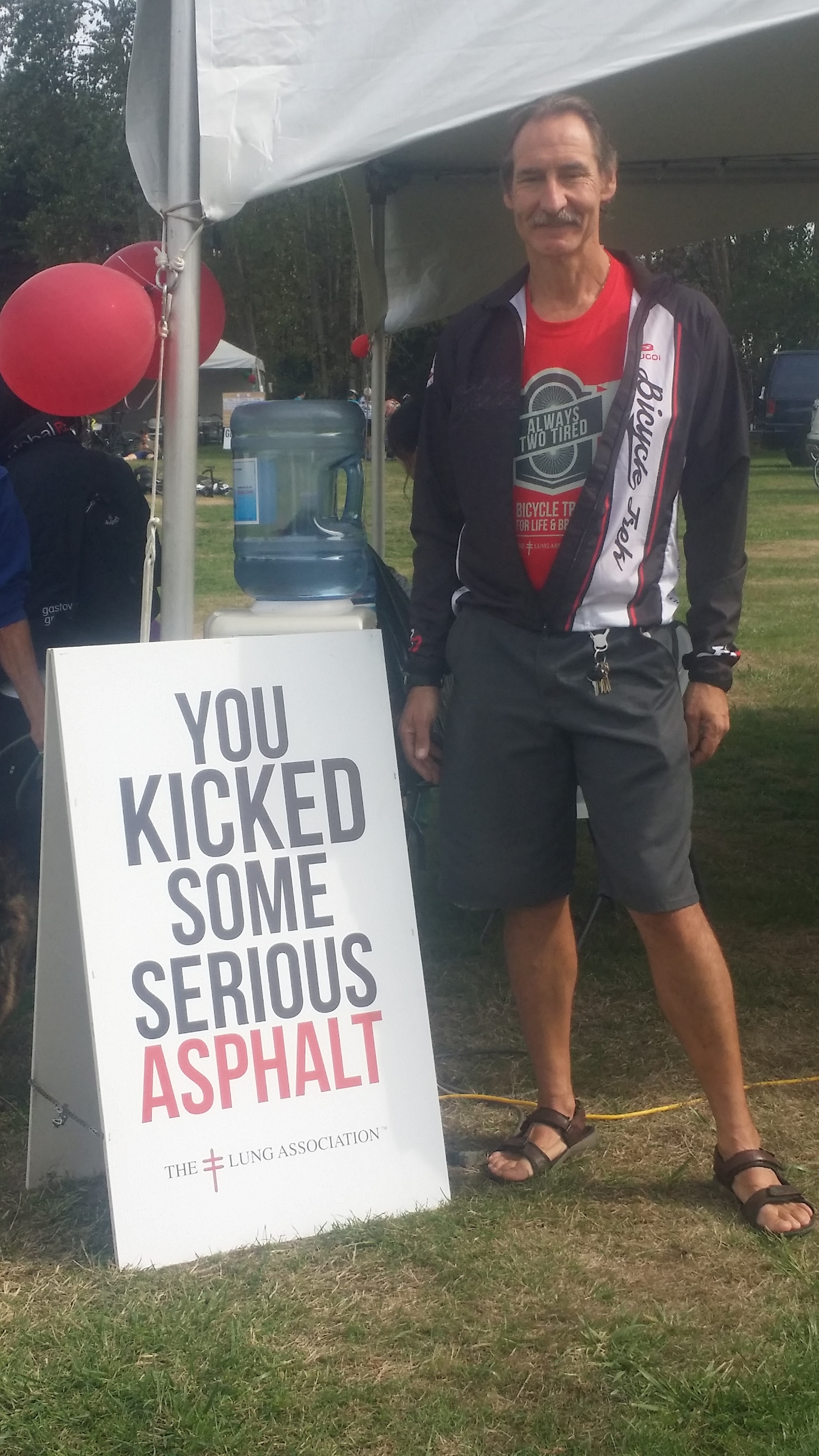 The event is a 200km ride through BC's picturesque Fraser Valley, from White Rock to Cultus Lake and back. All the fund raised will be donated to the BC Lung Association.