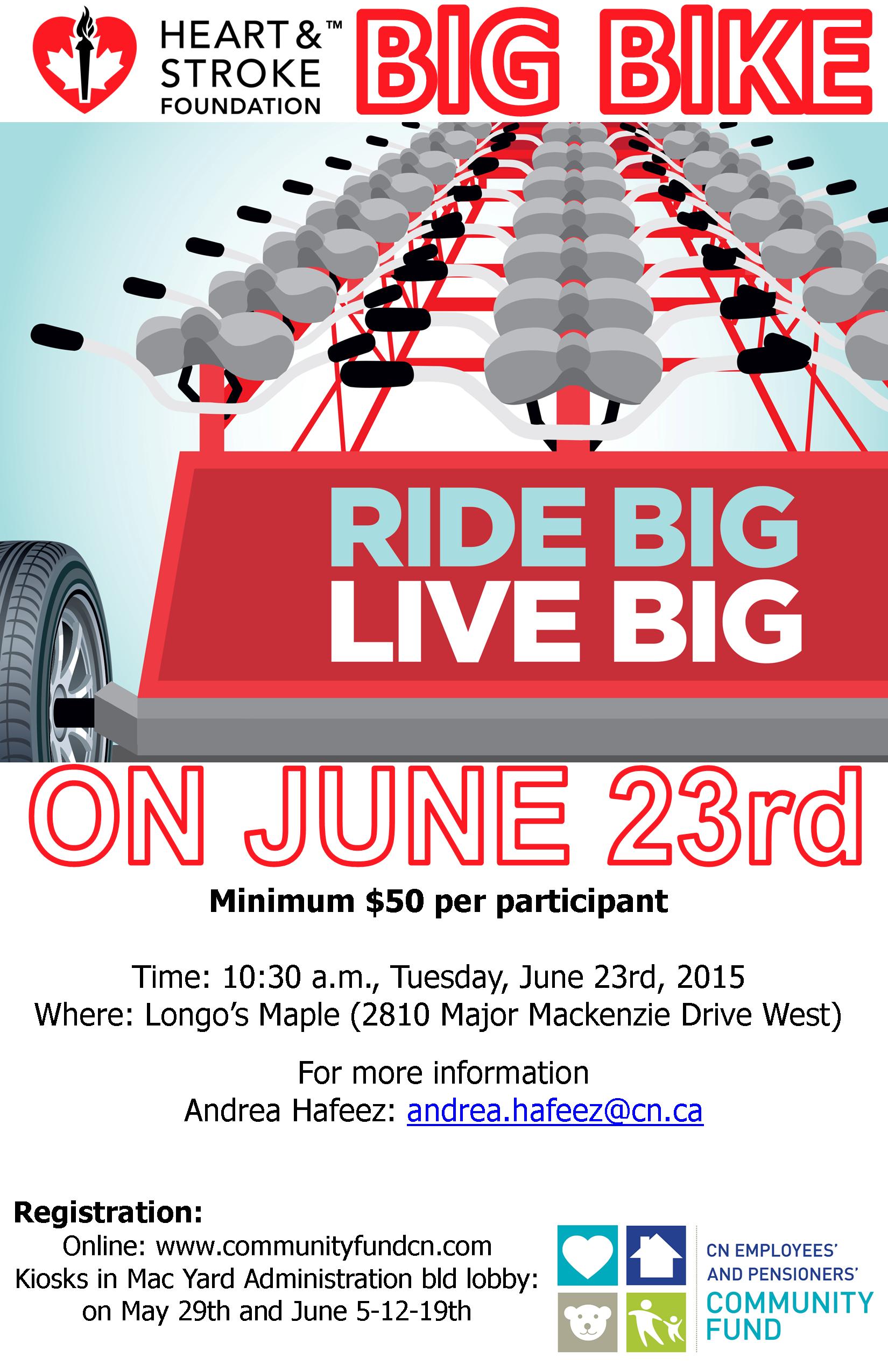 Joignez l'équipe du CN sur le "Big Bike" et pédalez pour soutenir la Fondation des maladies du coeur de l'Ontario.