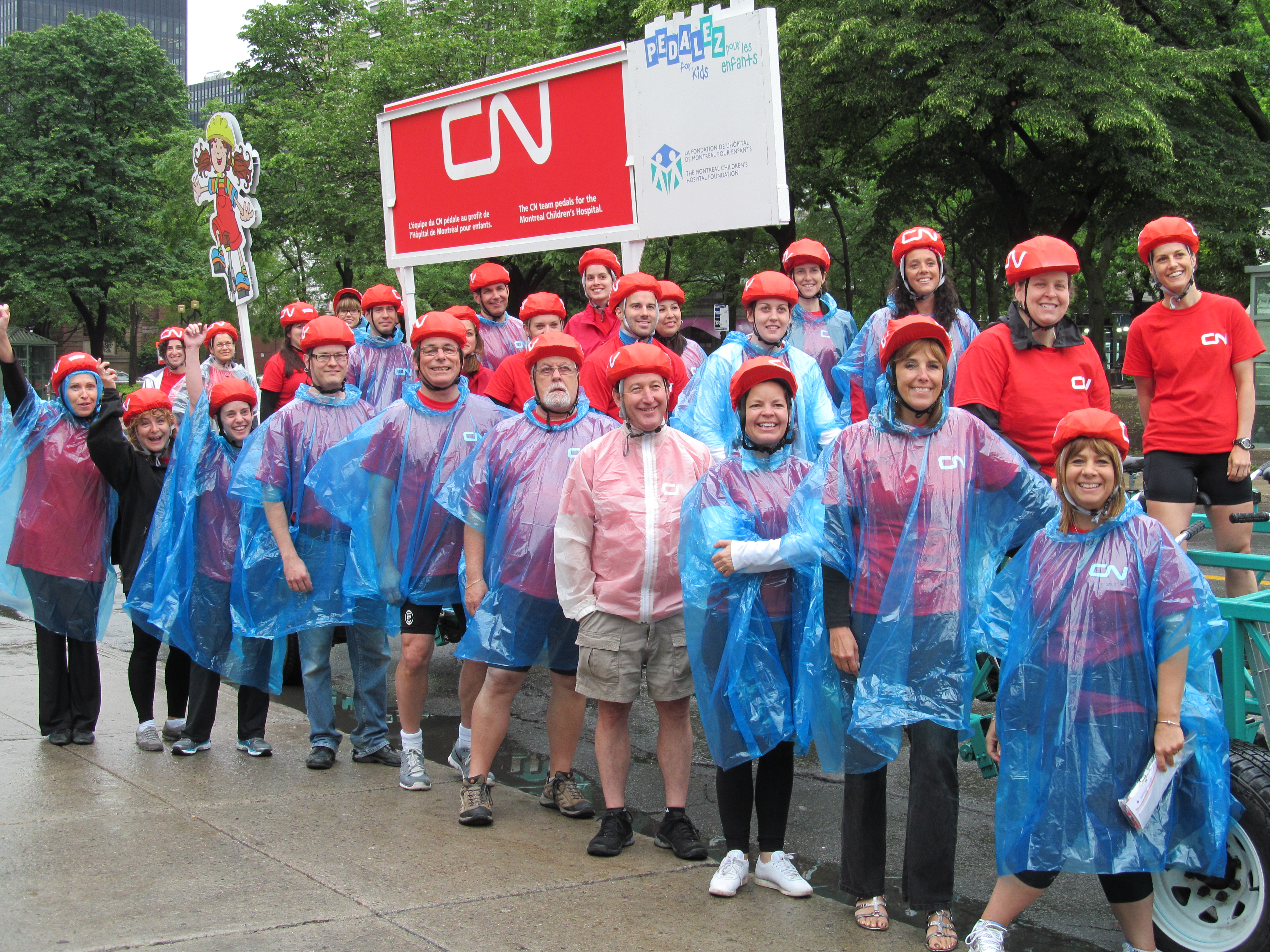 Joignez-vous à l’équipe du CN et prenez place sur le vélo géant pendant l’événement Pédalez pour les enfants, qui se tiendra le jeudi 18 juin 2015 à partir de 14 h. Comme les places sont limitées, faites vite et inscrivez-vous dès aujourd’hui! La date limite pour l’inscription est le 1 juin 2015. L’événement Pédalez pour les enfants, qui en est maintenant à sa 24e édition, est une compétition amicale où des équipes de 30 personnes participent à une course sur un vélo « multicycle » dans les rues du centre-ville de Montréal afin de recueillir des fonds pour la Fondation de l’Hôpital de Montréal pour enfants. L’année dernière, notre équipe a amassé 15 000 dollars. Nous demandons à chaque bénévole de recueillir au moins 300 dollars en dons pour avoir le droit de prendre place sur la bicyclette. Pour obtenir plus de renseignements ou pour vous inscrire, vous pouvez communiquer par courriel ou par téléphone avec la Caisse de bienfaisance 514-399-5912, caissedebienfaisance@cn.ca