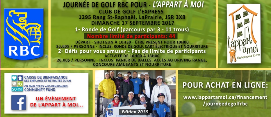 * N.B. Tous les billets "Ronde de Golf" ont été vendus. Venez vous amuser avez nous en vous procurant vos billets "Défis pour vous amuser" sur place.