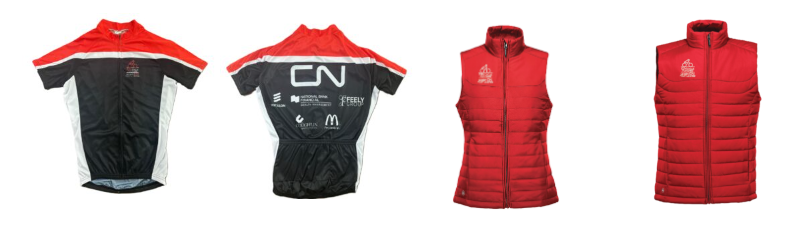 Ceux qui amasseront 175 $ recevront un maillot de vélo Défi CN pour le CHEO, et ceux qui auront amassé 500 $ recevront une veste de vélo Défi CN pour le CHEO.