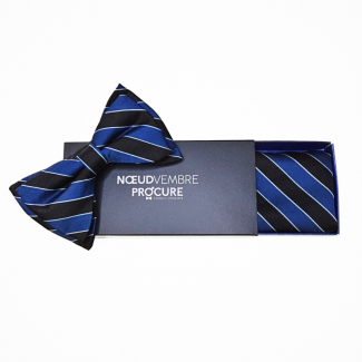 Faites un don de 45 $ ou plus à la collecte de fonds PROCURE Bowvember et recevez un magnifique nœud papillon bleu, gris et noir avec un mouchoir assorti.