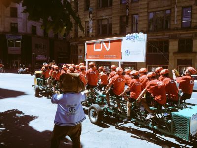 Jeudi, le 8 juin 2023 une équipe du CN prendra place sur le vélo géant de 30 places et pédalera dans les rues du centre-ville de Montréal afin d'amasser des fonds pour la Fondation de l'Hôpital de Montréal pour enfants et aider les enfants malades.